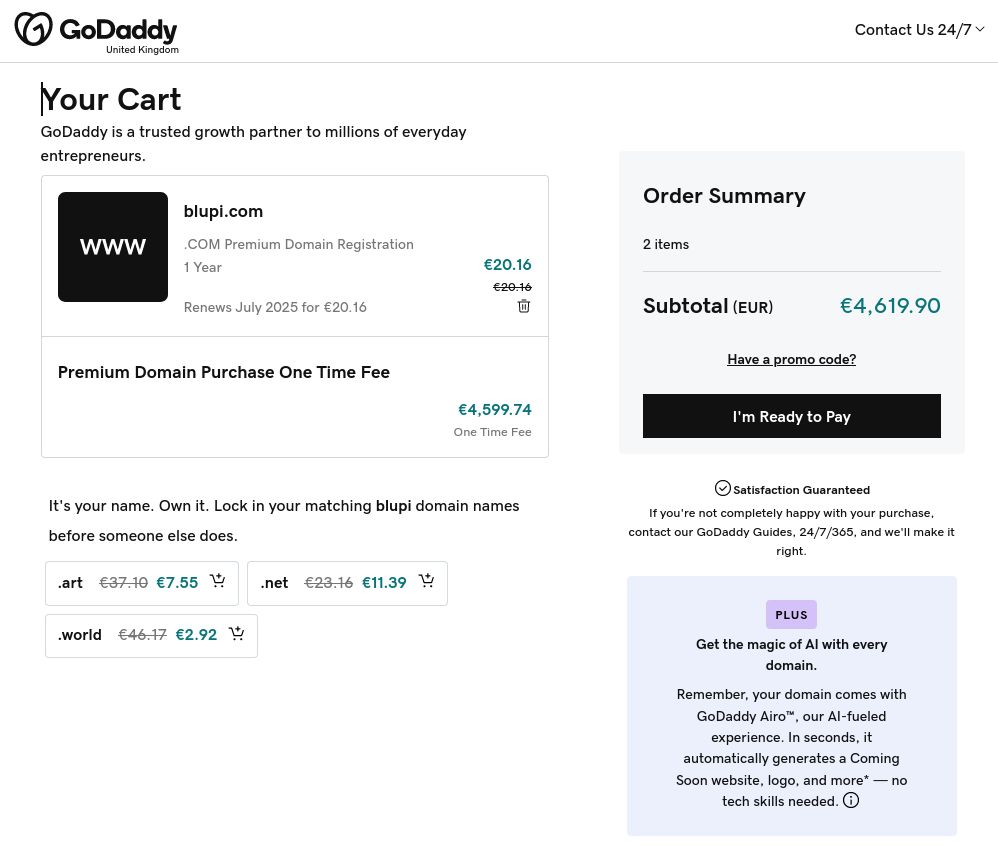Afternic is selling the blupi.com domain for the following price: € 4599.74 (which is about US$ 5000)